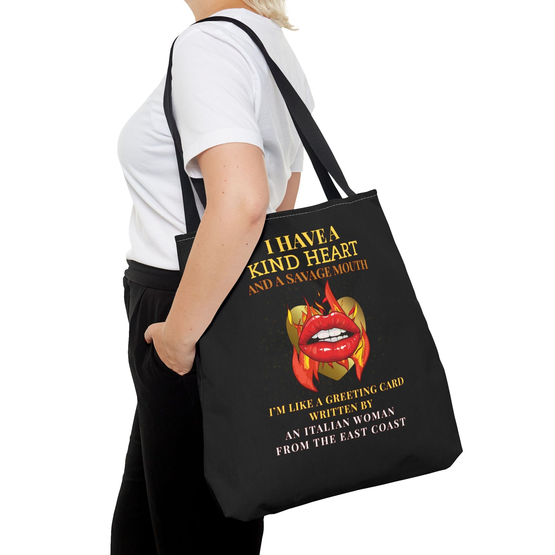 I HAVE A KIND HEART AND A SAVAGE MOUTH- AOP Tote Bag (BLACK) "Sweet and Salty"